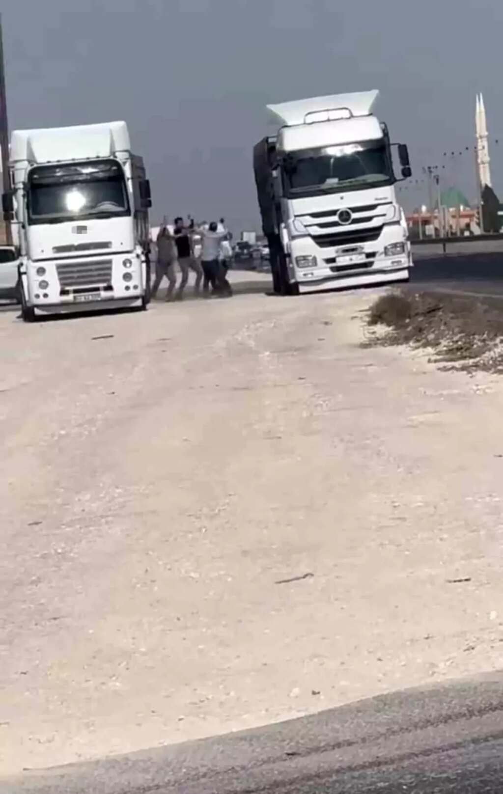 Mardin’in Kızıltepe ilçesinde tır şoförleri ortasında yol verme nedeniyle çıkan tartışma, ayakkabılı ve tekmeli hengameye dönüştü.